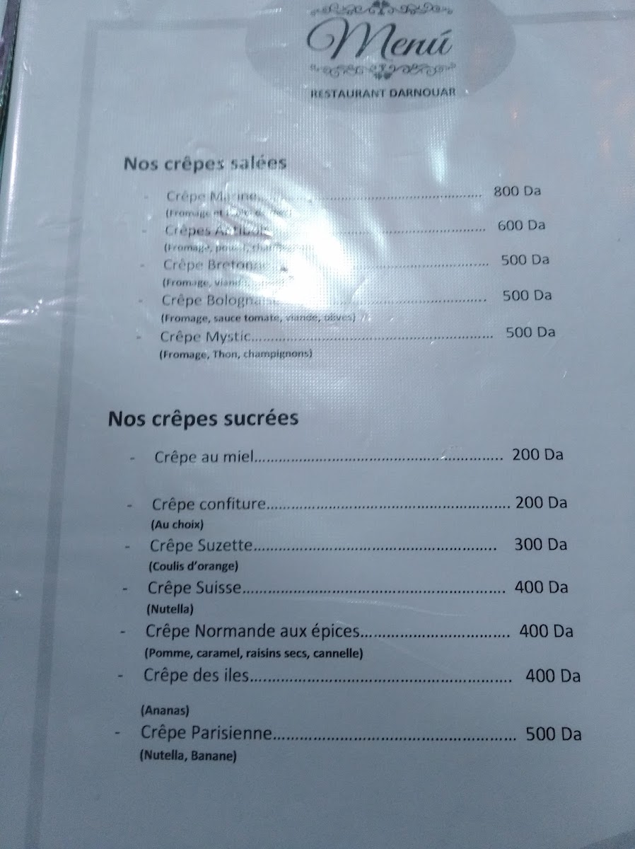 The menu at Restaurant Dar Nouar at 79 Av. Mustapha Benboulaid in Blida impresses with a blend of classic Algerian flavors and refined culinary touches. Highlights include the delicate Tarte Au Citron, which balances sweetness and citrus tang with precision, making it a memorable dessert choice. For those seeking a hearty main, the Plat Varié offers a generous assortment of meats, vegetables, and sides, showcasing the kitchen’s skill in harmonizing textures and flavors. Seafood lovers are well served with the Cruvette En Sauce, a rich and flavorful dish that captures the essence of fresh crustaceans, while the اطباق بحرية selection delivers a satisfying variety of seafood options that remain true to traditional Algerian preparations. Each dish reflects thoughtful attention to detail, both in presentation and taste, ensuring that diners leave with a strong impression of the restaurant’s menu versatility and culinary expertise. Overall, Restaurant Dar Nouar offers a menu that is both inviting and diverse, catering to different palates while maintaining a clear commitment to quality.